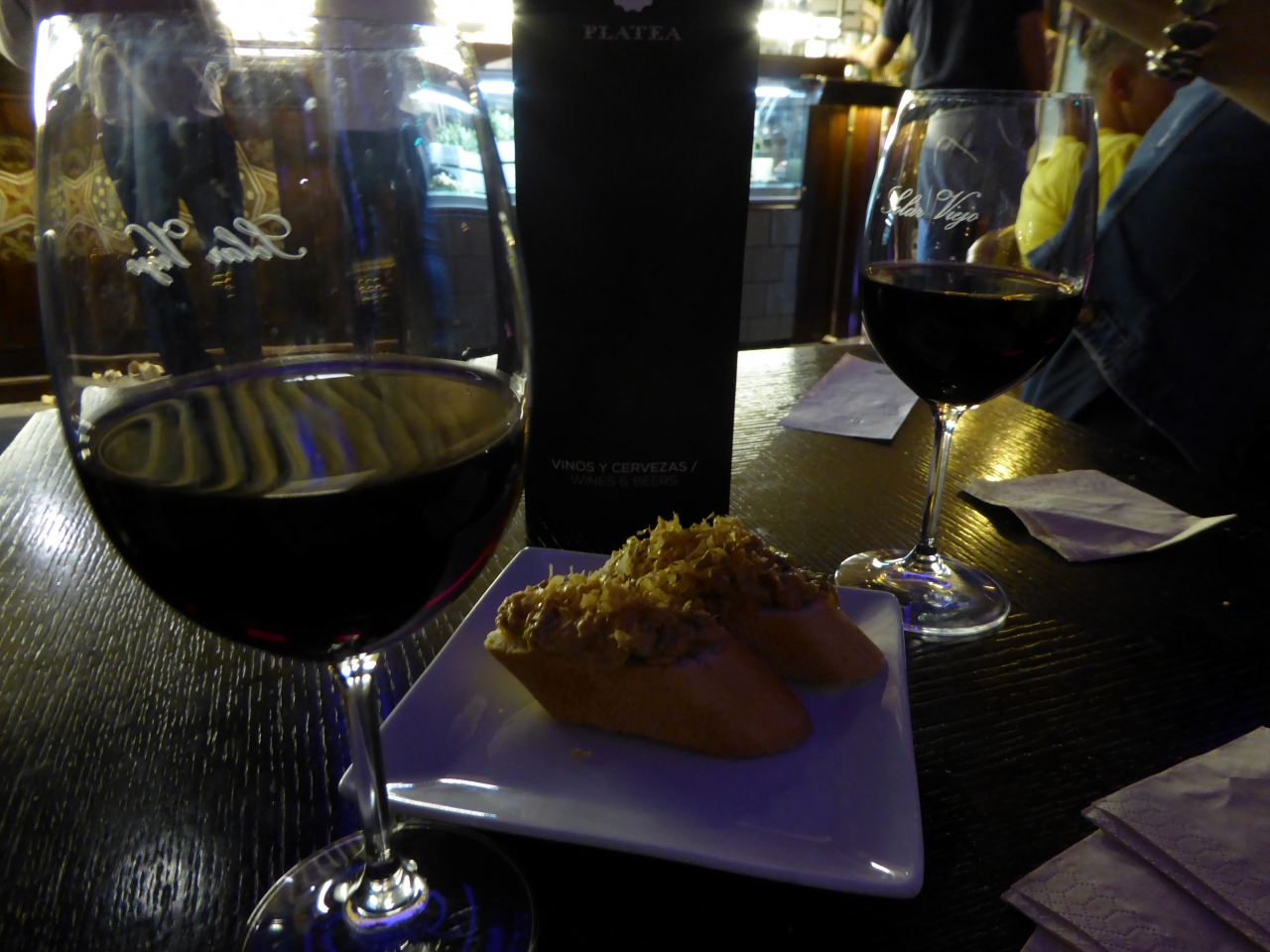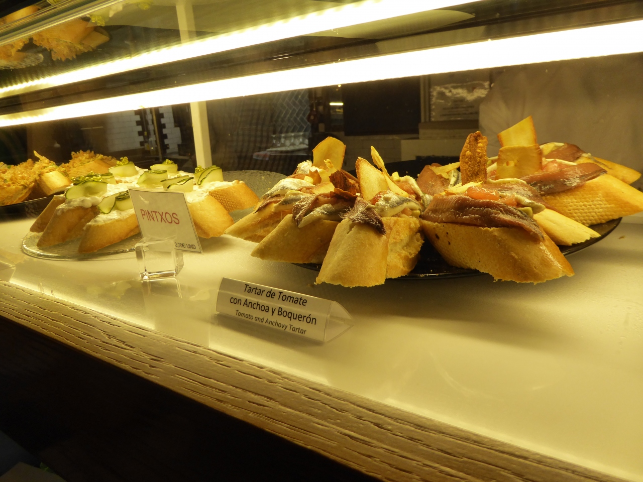 タパスを食べるなら、店に入って実物を見て選ばせてもらえます。グラスワインも希望の値段のものを選ぶと良いですよ。初日のグラスワインは5.5ユーロだったけど(一杯6ユーロって言うから、高いと言って5.5ユーロにまけてもらった)、翌日は3.5ユーロでした。