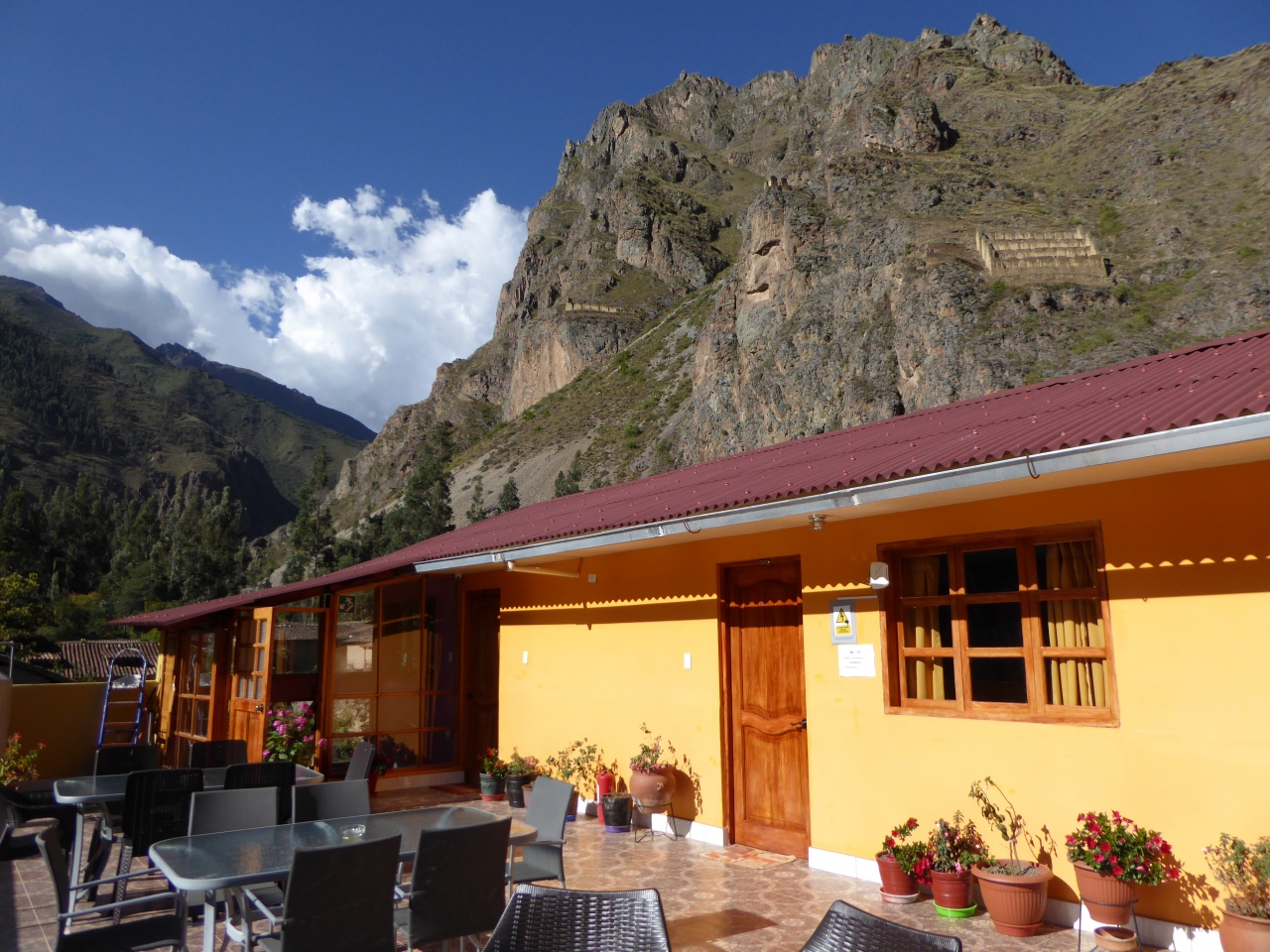 テラスからの眺望が素晴らしく、オジャンタイタンボの遺跡を見渡せます。