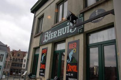 大肉市場そばにある、Het Waterhuisはビールの種類が豊富にあるビールの店。