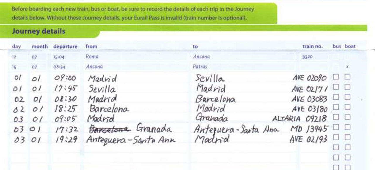 「Renfe」のHPは非常に良く出来ていて,日付・出発地・行き先を入れると可能な列車(番号)と時間が出てきますので,予定が立ったら前もって書き留めていくことおすすめします。