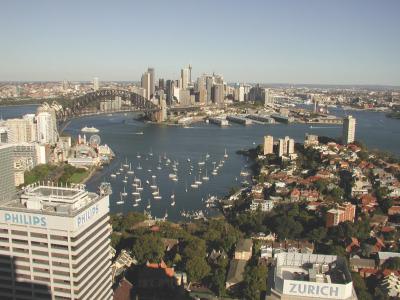 ノースシドニー市内の高層ビルからダウンタウン方面を撮影。 橋の影になっ...
