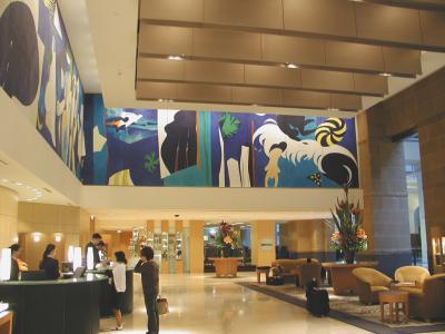 ウェスティンホテルのロビー。大胆な図柄で、いかにも大陸的。