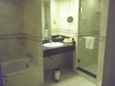 418号室のバスルーム。 広くはないが大理石で落ち着いた雰囲気にまとま...