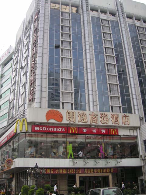 少し時間が経ってしまったのですが、中国広州市でとてもお勧めできるビジネスホテルがありましたので報告します。 ビジネスホテルということで期待していなかったのですが、これが快適&お得! 都合で市の中心部から南東に少し離れたホテルに泊まる必要があり利用したのですが、中心部から離れていると言ってもタクシーで10~15分程度ですから不便ではありません。4つ星以上のホテルと比べれば多いとは言えませんが、朝食としては十分な品数のメニュー。 お粥やパン、ケーキやフルーツなどのデザートまで用意されています。 当然、コーヒー、紅茶、ジュースあり。 部屋は決して広くはありませんが(と言っても日本のシティーホテルクラスより広い)、清潔で快適。 バスタブはありませんが、シャワーブースとなっており問題無し。 勿論、お湯もチャンと出ました。 そして何より,測定したら3Mbpsもの速度のインターネット回線が無料で使い放題! この内容で宿泊費が400元以下。 これはお得です。 仕事で1000元以上のホテルを使う必要がある場合以外はとにかくお勧めです。 観光で利用されても安心、快適だと思います。 フロントやドアマンなどのスタッフもとても親切で、近所のレストランなどを親身になって教えてくれました。 写真で判るようにホテルの2階がマック。 周囲にも美味しくて安価な中華レストランやケンタッキー、雑貨店もありとても便利。 小さな市場などもあり、広州市の別の一面をみることが出来るホテルとして、私としては、お勧め度”5つ星”です!