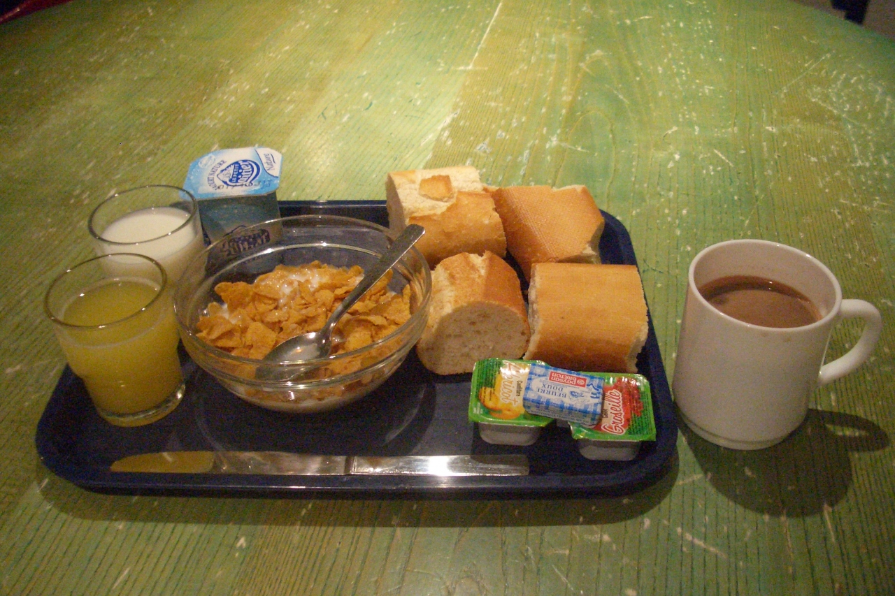 ユースホステルなので基本は相部屋になります。3人から10人で、受付で適当にあてがわれます。施設として食堂、バー、調理室、ランドリー、コインロッカー、インターネットなどがあります。ユースホステルとしては設備は最上ランクにあると思います。写真は食堂です。朝は宿泊費に入っていて無料、昼、夜はホールの自動販売機で食券を買ってレストランに持って行き食べるシステムになっています。地下鉄の一日乗車券のモバリスや回数券カルネも売っています。