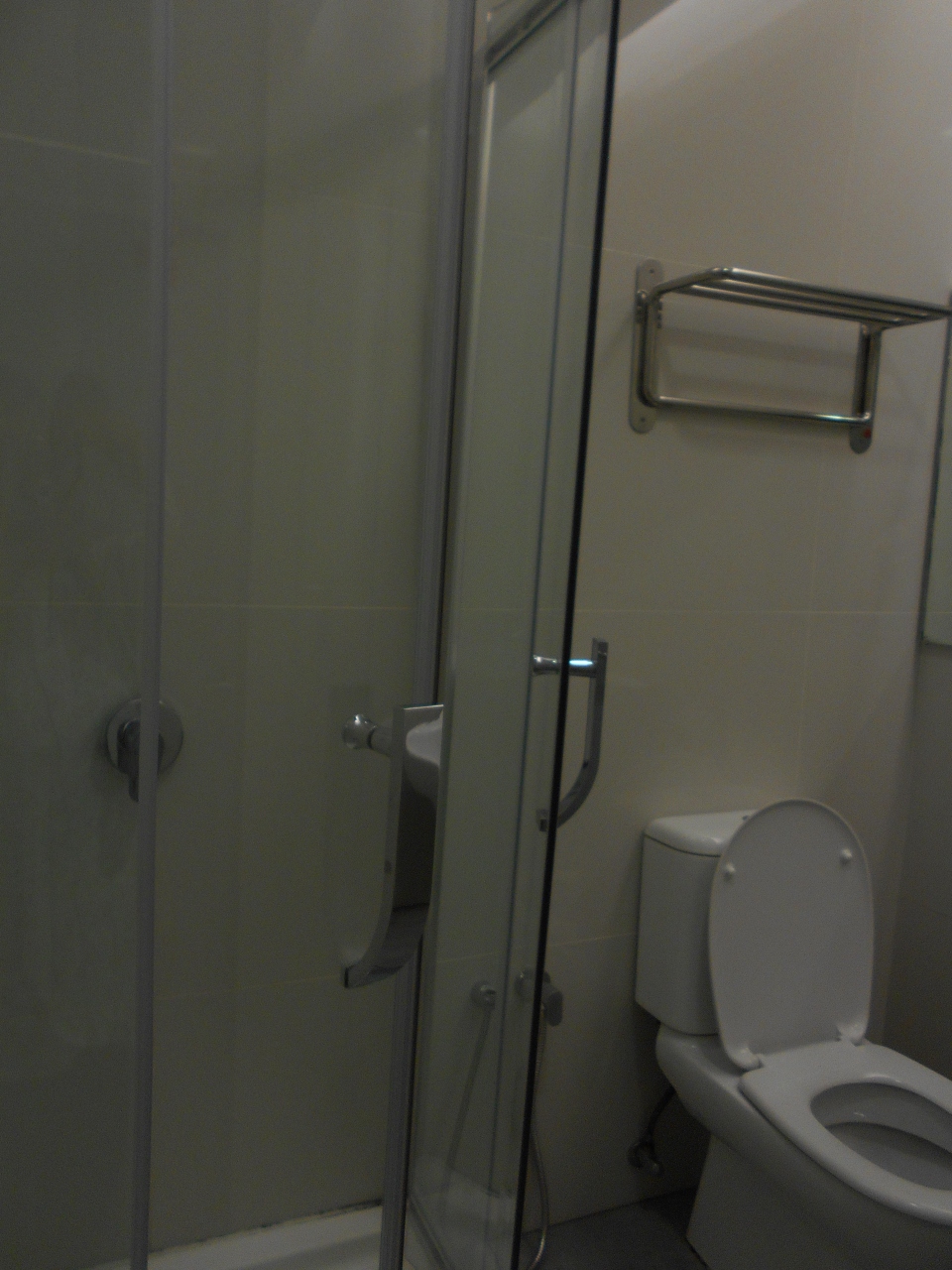 搭乗フロアの階下にあるトイレは2か所シャワーも併設(無料です。アメニティなし)。トイレは清潔なのがありがたかったです。