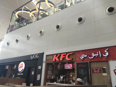 1Fの到着ロビーにはバーガーキングとKFC、SIMカードカウンターとATMあり。