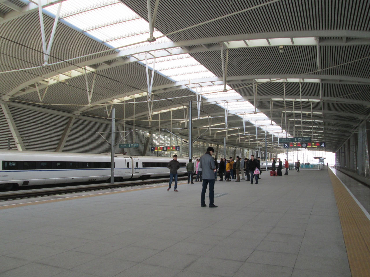 蘇州始発はなく北京と上海を結ぶ京滬高速鉄道の途中駅ということもあり、座席(2等車)が前旅客の残骸が残っていました。全般的には新暦1月1日の休日にも関わらず、在来線がないためかベンチも空いていたぐらいで、人にまみれて…の蘇州駅とは大違いなようです。