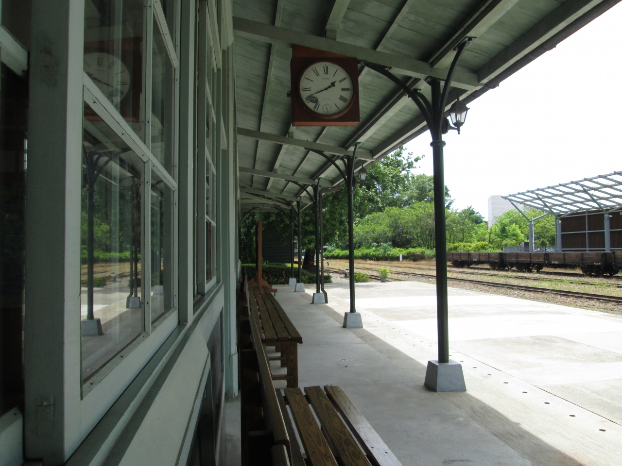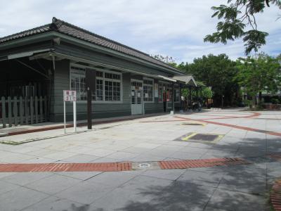 嘉義駅から阿里山鉄道の沿線に沿って(一部は鉄道沿いに細い道があります)、暑い中歩くこと約25分)、ペパーミントグリーン色のかわいい木造駅舎が現れました。