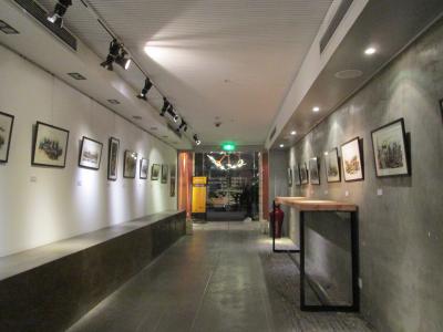 ギャラリーの奥にフロント&レストラン、小さな規模のブティックホテルです。
