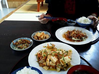 平良市街を離れて北の池間島方面に向かう途中にある、田舎らしい門構えの食堂で、たこそば、たこ丼、たこ炒め定食と蛸料理が有名です。