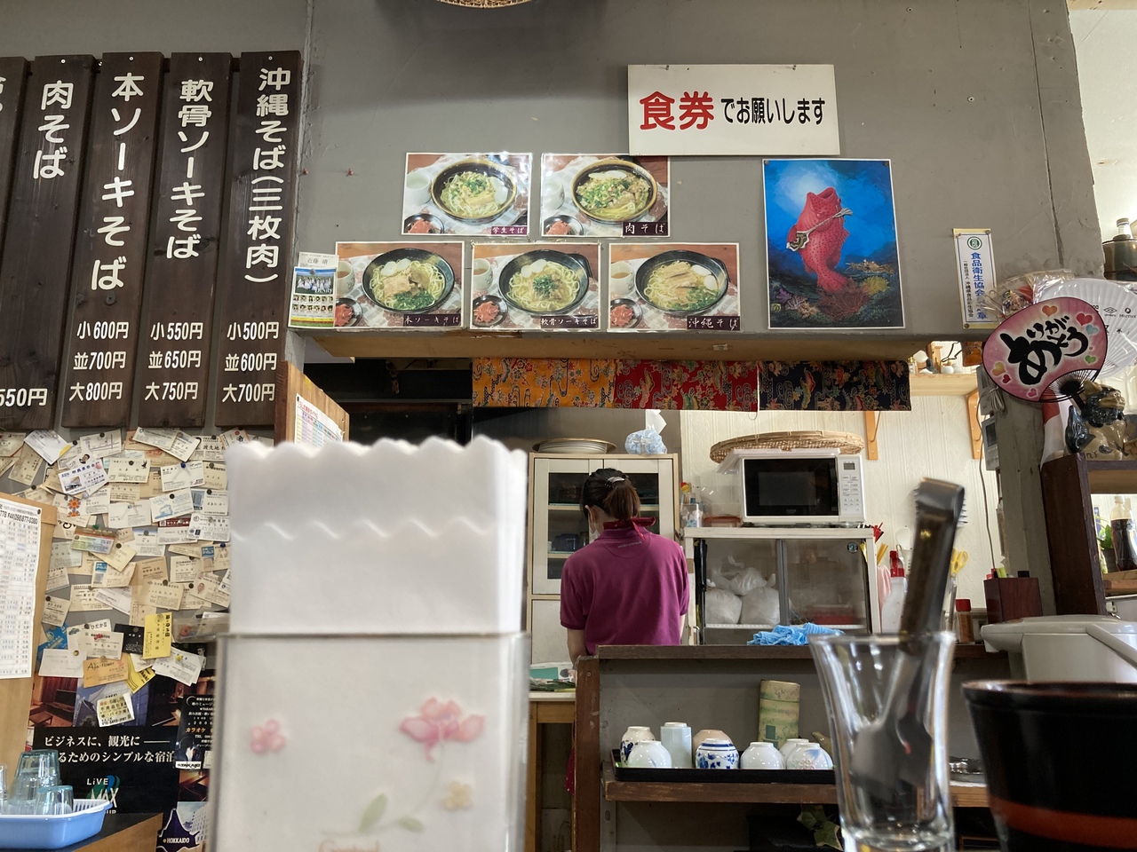 食堂的な沖縄そば専門店ですがカレーライスやぜんざい(沖縄風の冷たい方)も食べられるお店です。そばのサイズも大中小と選べます。