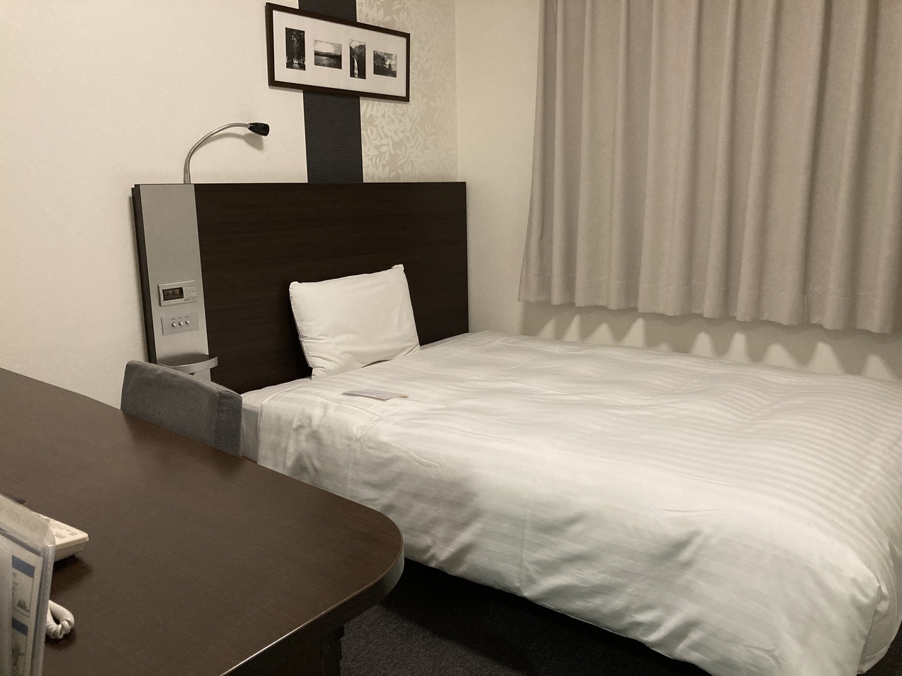 高山駅穂高口(東側)駅道向かいと、早朝バス乗車予定の方には便利な立地です。このクラスのビジネスホテルとしては標準的な部屋の広さとバスルーム。大浴場もありましたが今回は使わずじまい。