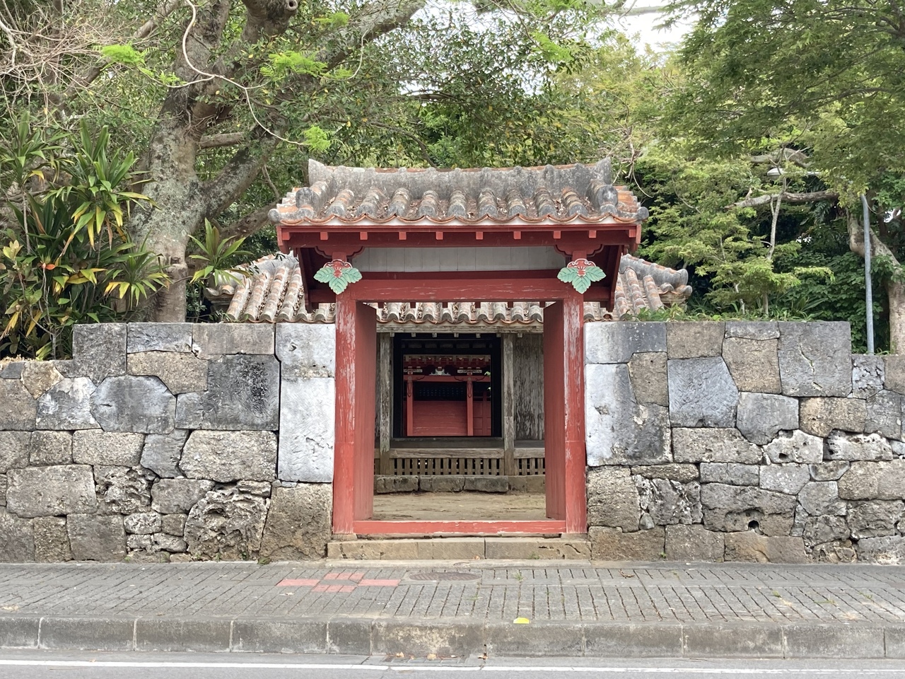 18世紀に発生した明和大津波(八重山地震)の被害を受けて破壊されたあとに再建(※)されたものですが、明治、昭和期と数度修復がされており、神殿の龍や象、ウサギといった彫り物などもくっきりと鮮明です。