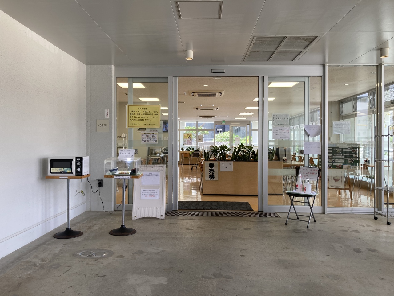 市役所2階フロアの一番奥にある市役所レストランは通常営業していますが、2021年5月現在感染防止のため営業時間が10:00~14:30ラストオーダー、15:00閉店に変更になっていますのでご注意ください。日替わりランチ(オーダーは11:30~)はあり。