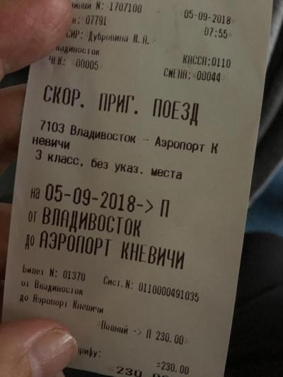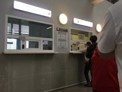 空港駅の切符売り場は窓口1カ所だけなので購入にやや行列あり、英語も申し訳程度。ウラジオストク駅は窓口と自動販売機。改札口が切符のバーコード読み取り式のためチケットなしで車内検札時購入は不可能。窓口購入ではクレジットカード利用出来ました。