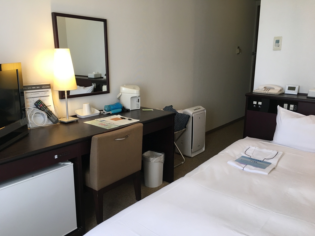 中央区の馬喰横山駅チカとほぼ都心にありながら1人で泊まって5000円未満(素泊まり)、ビルのワンフロアを仕切って宿にした簡易宿舎のようなホテル。窓がない部屋が大半のようで慣れているバックパッカーやドミトリーを避けたいけど割安を求めるファミリーの宿泊が大半でした。アメニティは使い捨てでなく使い古し(?)のブラシやドライヤーが共有スペースにずらりと並んでいて勝手に使ってくださいね感あり。同じ共有スペースにはホットドリンク&冷蔵庫コーナーがあり、フリーで使えます。(カップ麺は有料)