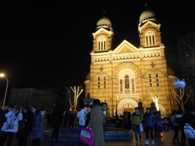 地下鉄営口道駅下車濱江道繁華街に近く、12月31日(新暦)の夜に訪れたため周辺は人人人だらけで夜の教会の静かな雰囲気にはほど遠かったのですが、大半の人はセルフィーしたらすぐに敷地の外に出てしまうのでゆっくり外観を眺めることが出来ました。