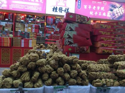 天津勧業場裏の長春道沿いには「十八街麻花店」という名前の看板だらけでどれが本家なのかわからなかったので適当に店を回りばら売りタイプのものを購入。