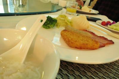 朝食はブッフェ、種類はたくさんありましたがご飯は冷たくパンもパサパサ。