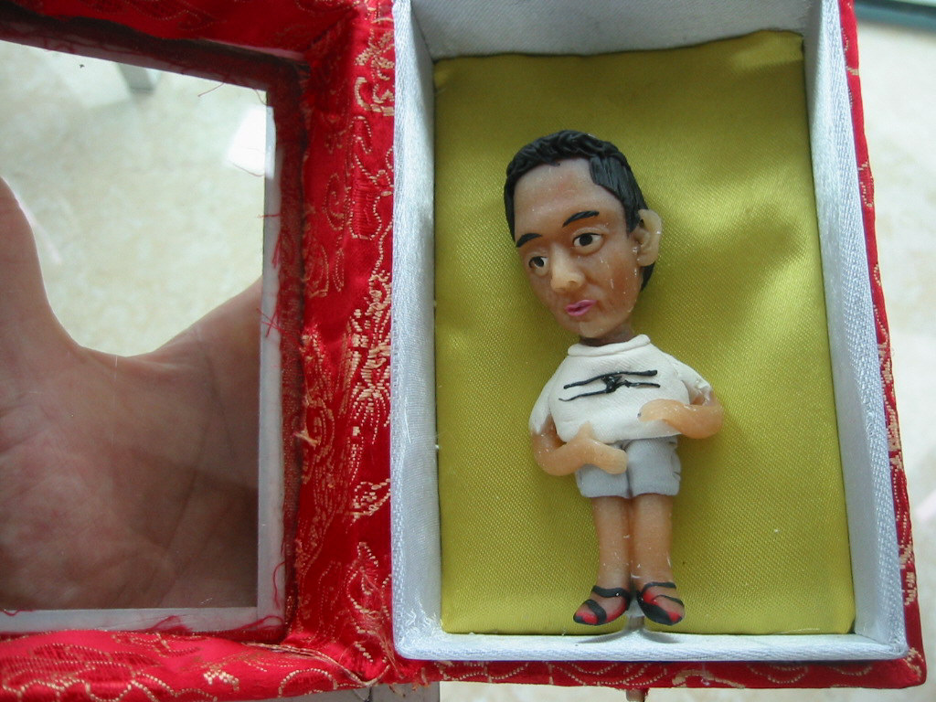 観光地にはよく似顔絵描きがありますが、そのお店は似顔絵ならぬ「似顔人形」。粘土のようなものでお客さんのフィギィアを作ります。