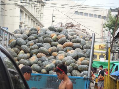 トラックにはかぼちゃが尋常ではないくらい積まれています。