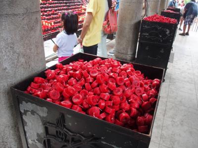 マゼランクロスの隣、サント・ニーニョ教会へ。たくさん蝋燭が置いてありま...