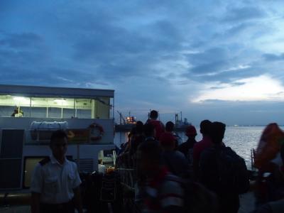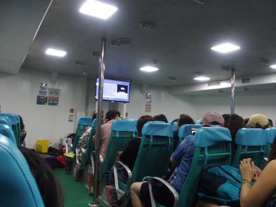 船内は幅の狭いプラスチックの椅子が置かれていて、結構窮屈でした。早朝で...