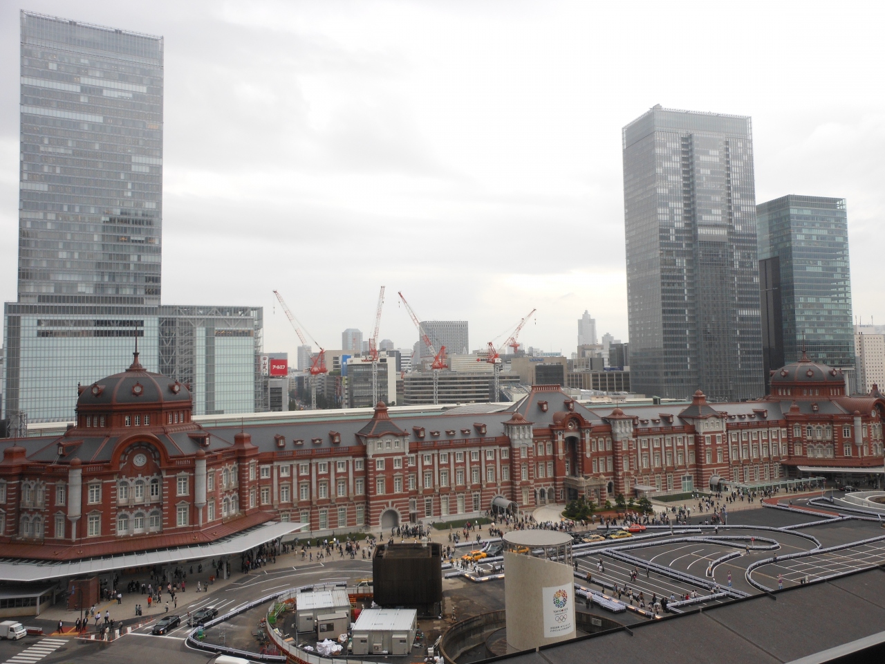 10/1に復活新装オープンした東京駅の赤レンガ駅舎を一望するには7階のガーデンテラスか、6階の東京駅側のレストランの窓側席が最良の場所だと思います。