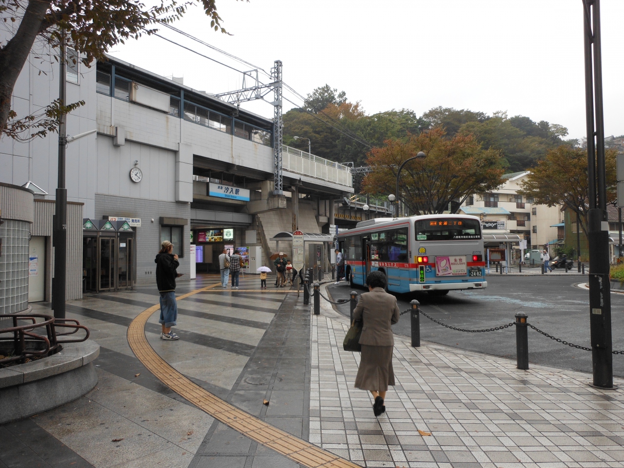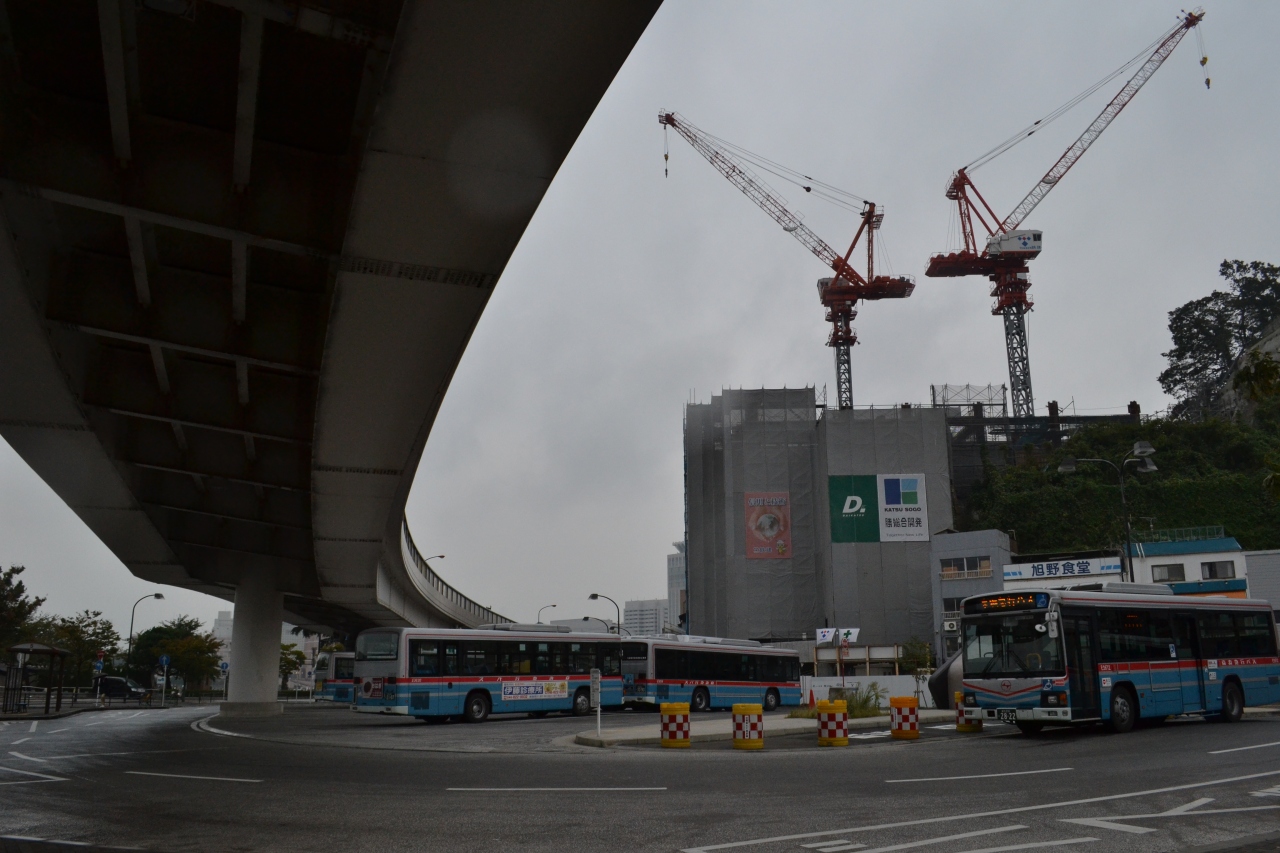 駅前広場は狭くタクシーやバス停に向かう乗降客でごった返しています。シーサイドラインの駅は国道16号線(横須賀街道)を渡ったところにあり、歩道橋を渡っていきます。バスターミナルも少し離れた場所にあり、狭い場所を縫うように歩いていく必要があります。今後、再開発が多少進むようで工事が進められています。- 旅行時期