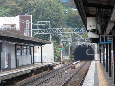 汐入駅はトンネルとトンネルに挟まれた谷あいの駅で、ホームに降り立つと山奥の駅に降り立ったかのようです。