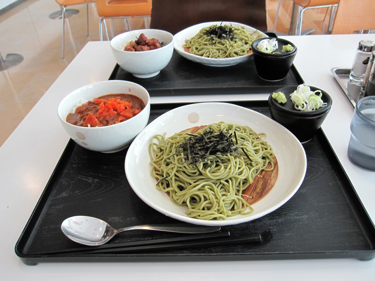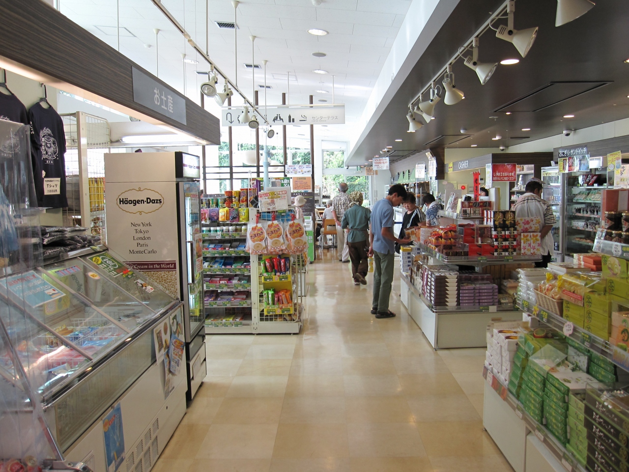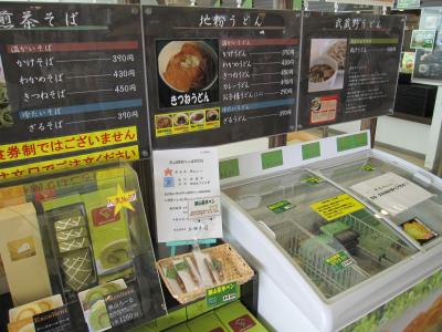 全体のテイストが狭山茶の緑があしらわれていて、テーブルの上のナプキンまで狭山茶の茶殻を原料にした淡い緑色をしています。とっても雰囲気が良く、どこかお洒落なカフェに行ったかのようです。おみやげ品も狭山茶のアイスやロールケーキ、食事処も茶そばだったりと、緑のブラインドを通して差し込む日の光までもがまばゆいばかりです。