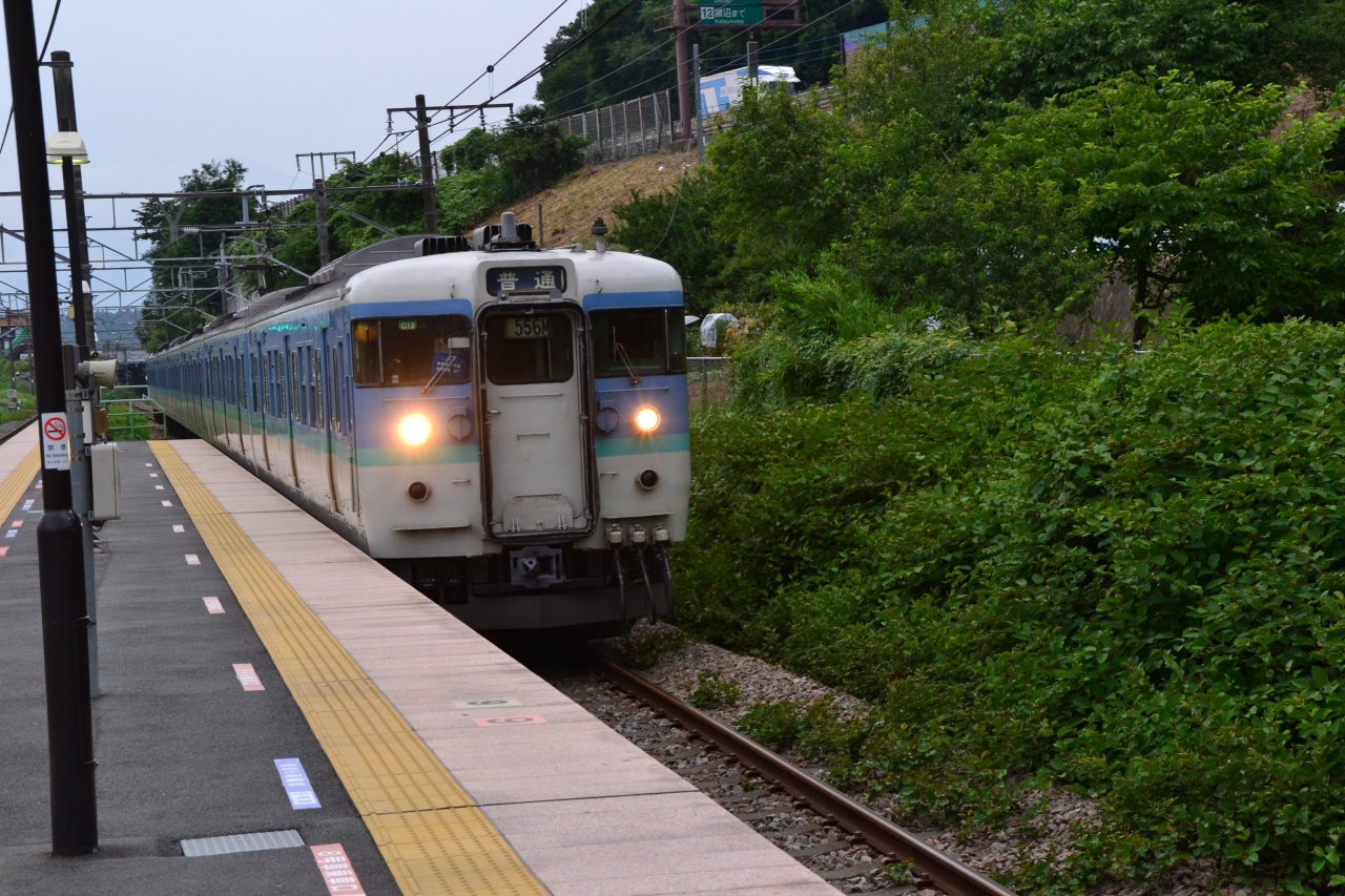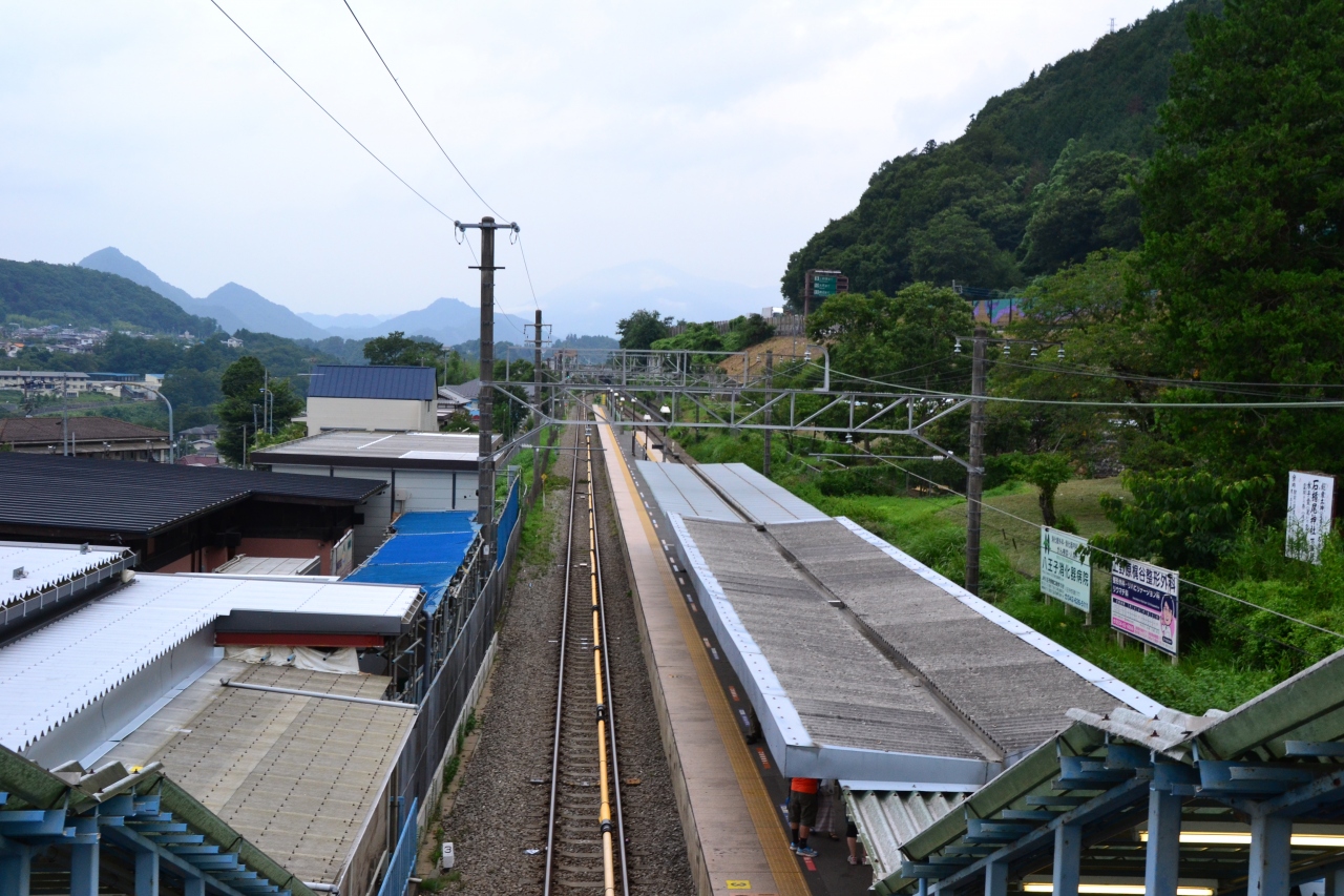 中央本線線の駅。大月方面の下り線と高尾方面の上り線ホームが互い違いに配置されています。駅の上方には中央高速が通っています。