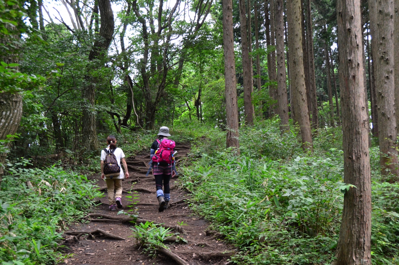 山頂には二軒の茶屋があって、なめこ汁など登りの疲れを癒してくれる食べ物・飲み物があります。また整備されたトイレも山頂近くにあるので、安心です。