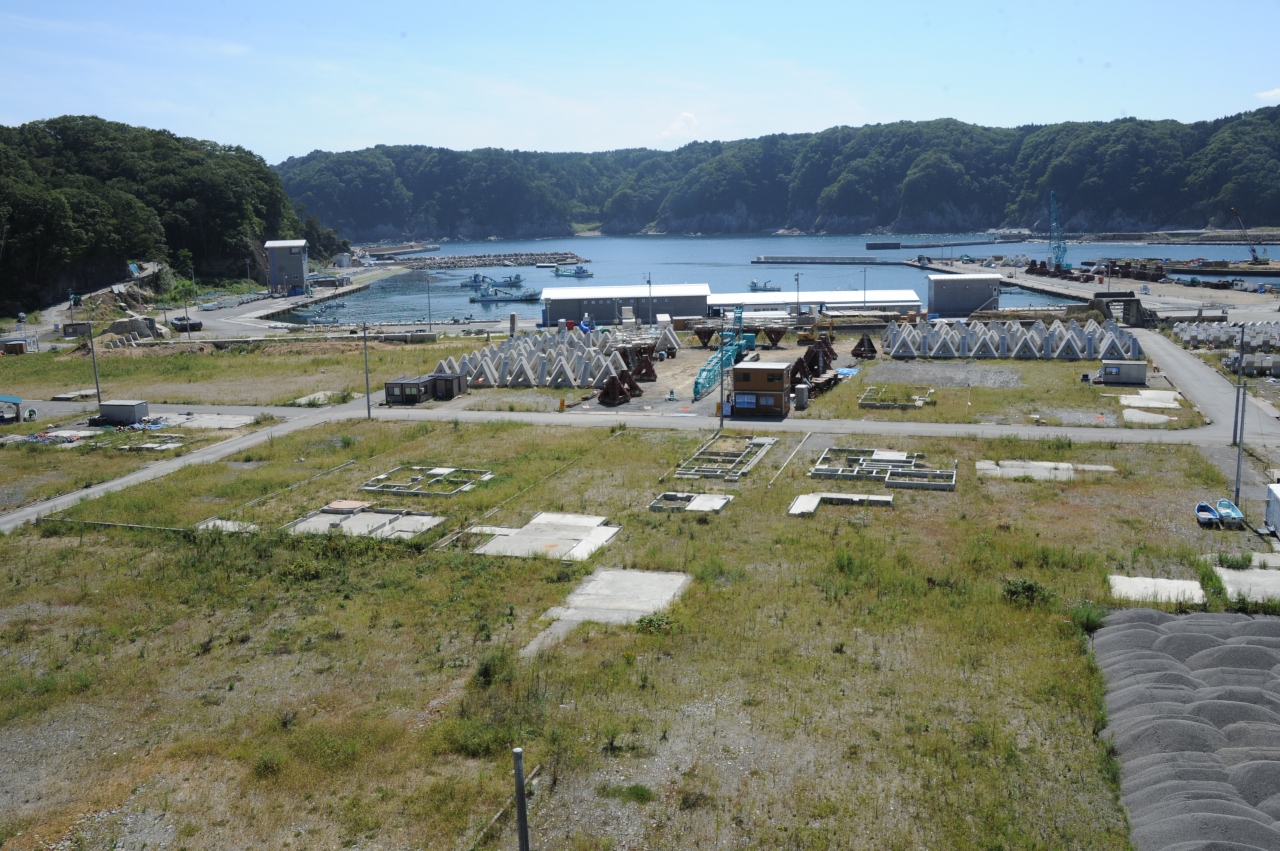 かつて、たろう観光ホテルのい斜め向かい側にあった民宿で、ネット上の口コミ評判もとても良かった民宿です。第2防潮堤のエリアはたろう観光ホテルが3階まで津波に飲み込まれ、壊滅的な被害を受けたものの、建物はかろうじて残って、残骸が津波の凄さを物語っています。周囲にあった建物は全て流失していて、いまは土台しか残っていません。