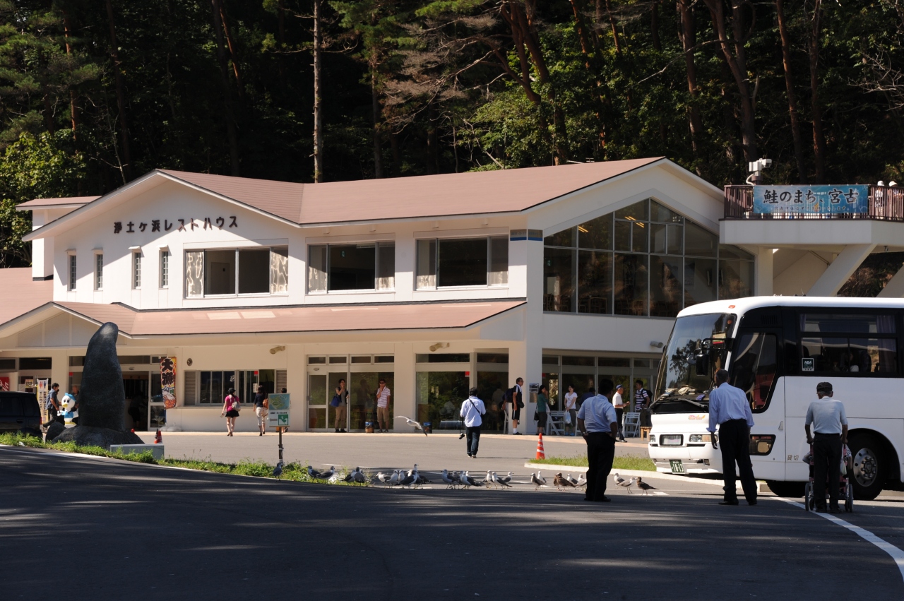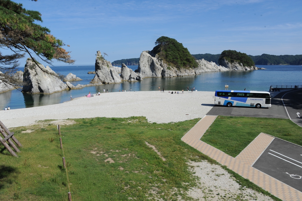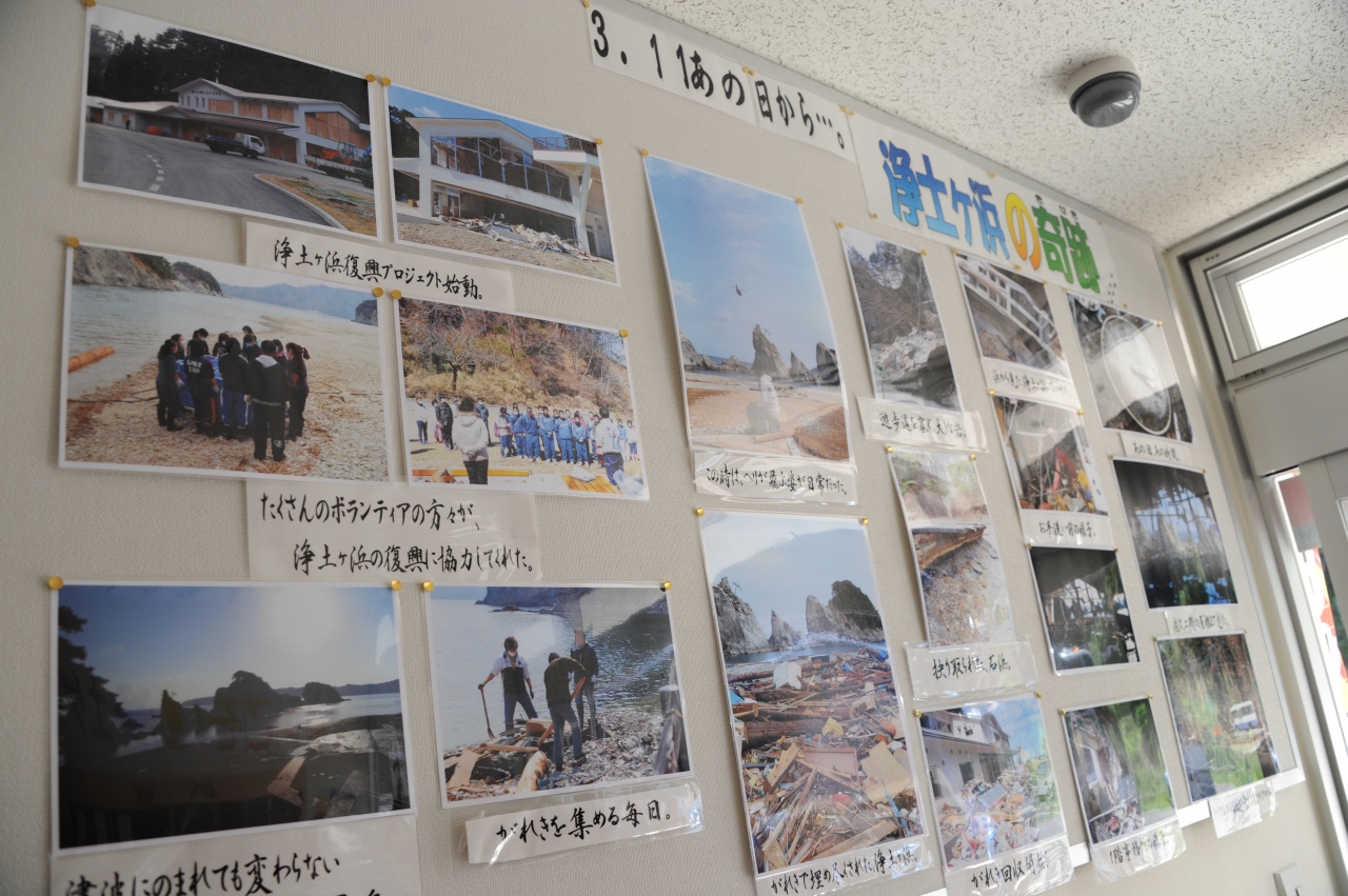 浄土ヶ浜の浜辺の目の前にあり、2010年にリニューアルしてすぐに震災で津波被害に遭い、やっと7月に復興したばかりです。