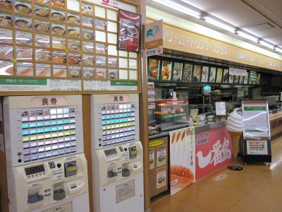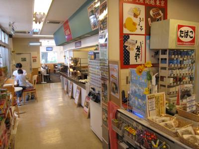 因みに、食堂は高速道路のパーキングエリアでは珍しく食券ではありません。おそば、茶そばがメインで、お好みでてんぷらのトッピングや稲荷寿司のサイドオーダーをカウンターで取り、最後にレジで精算する流れになっています。