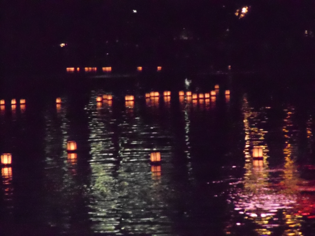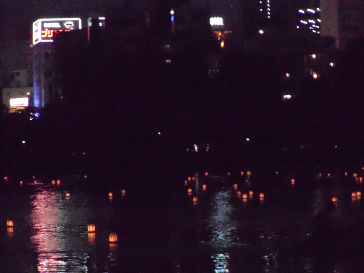 19:30から弁天堂前で法要が始まり、ほどなくして不忍池で精霊船が流されます。法要では参集者もお焼香が出来ます。池で流れが無いので風向きによって流す場所を決めているようです。今年はボートを使って精霊船を散らしていました。今年は東天紅上野本店のあたりから流していたようです。20:30頃には流した精霊船は回収されます。