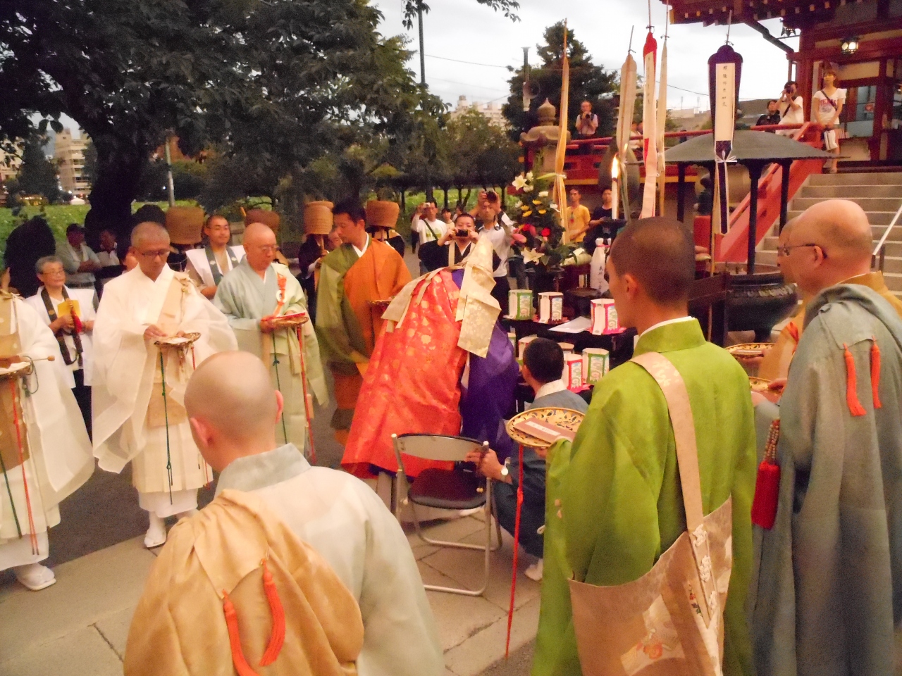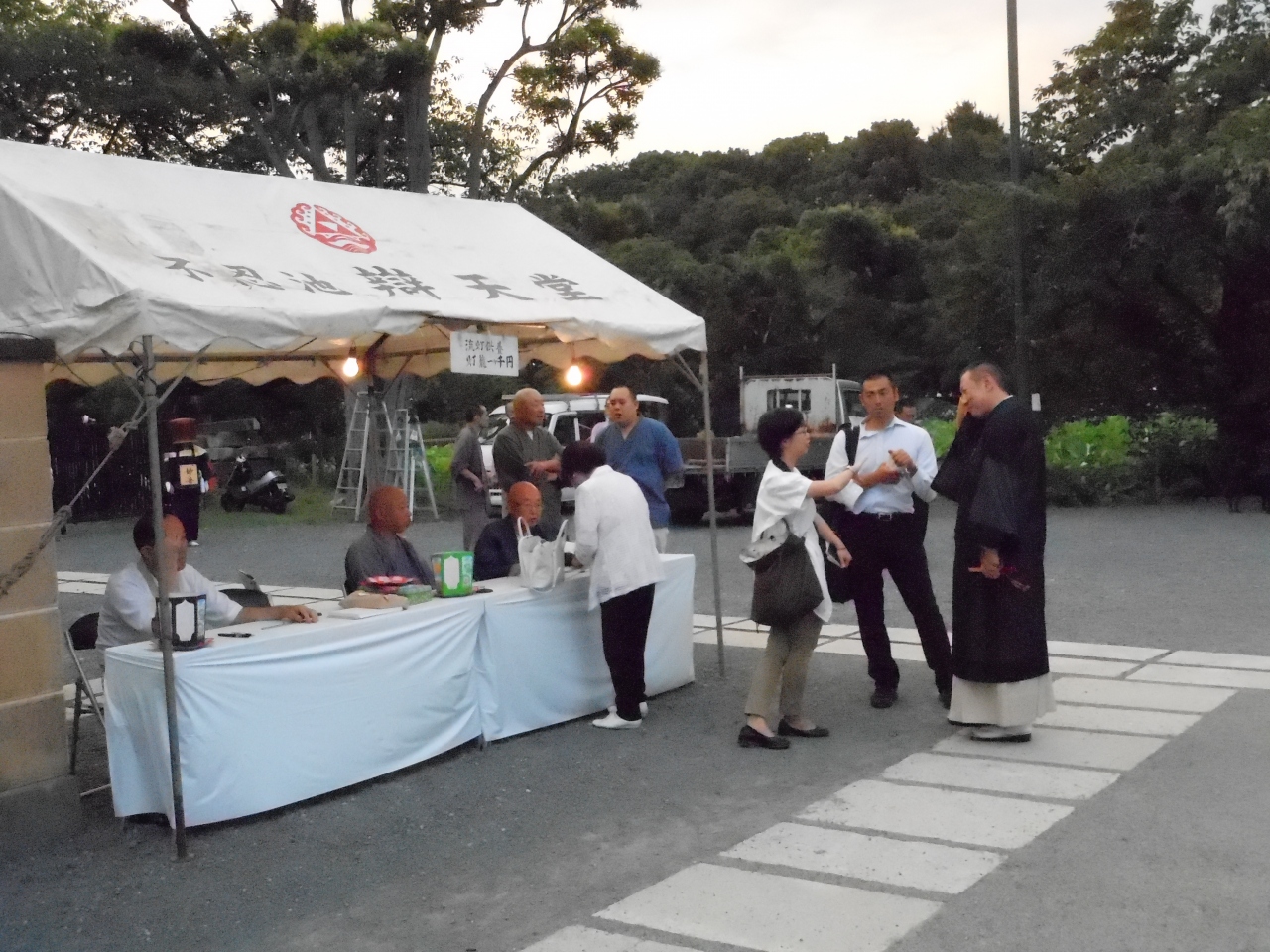 7月17日(月曜日)ようやく辺りが暗くなり始めた19:30より下谷仏教会の主催するお盆の恒例行事、精霊流しの法要が行われました。
