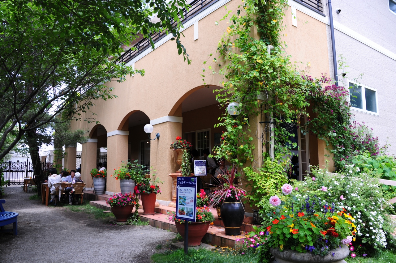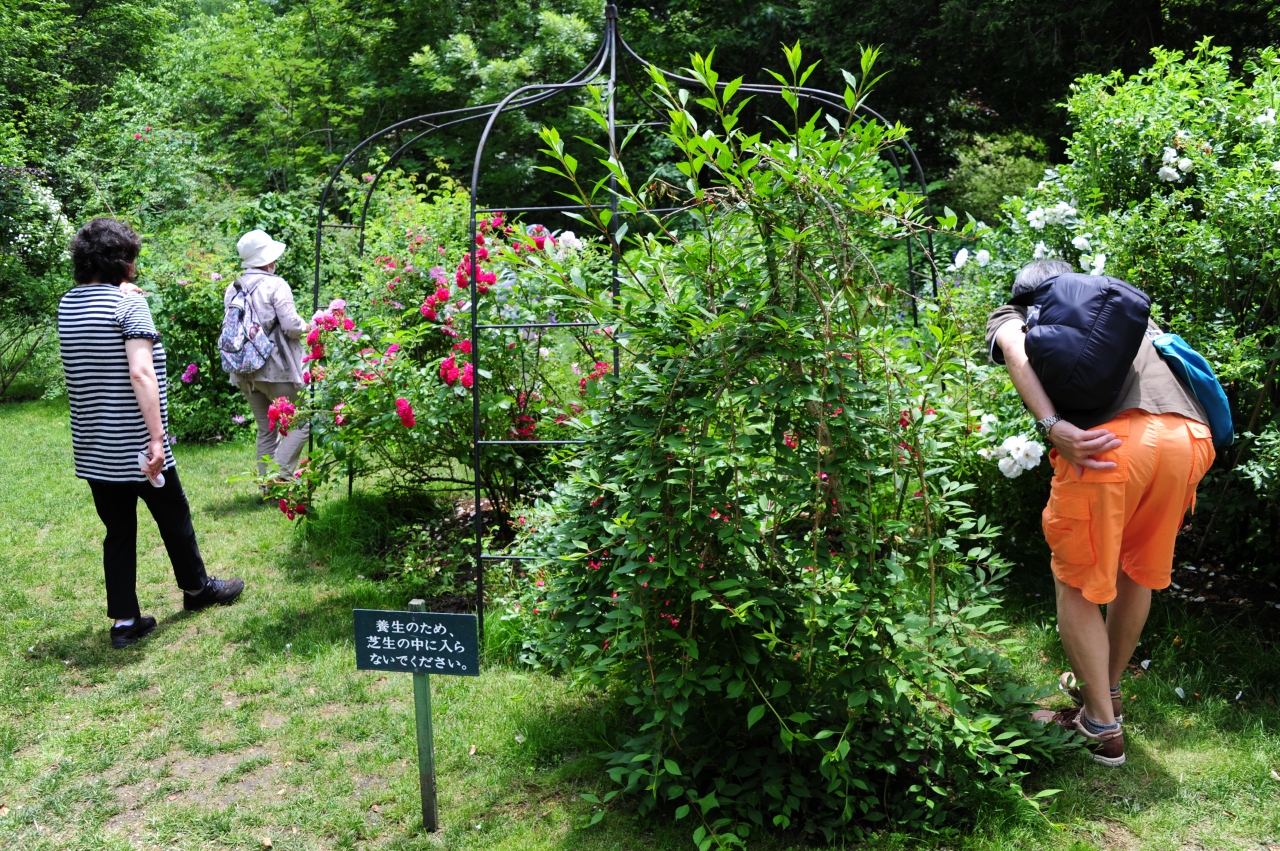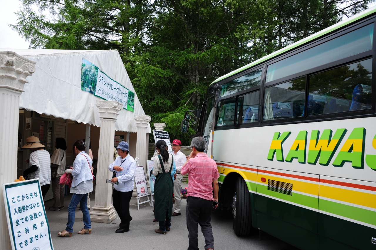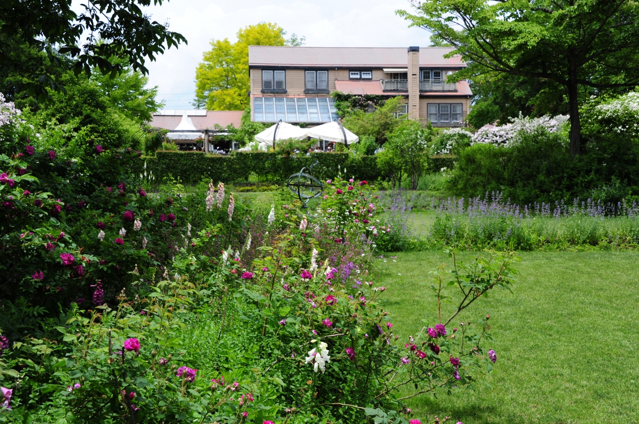 JRの駅のポスターでも良く見かけるので、それにつられて行ってみました。園芸用具やお花の関連グッズのお店を抜けるとイングリッシュガーデンがあります。園内はそれほど大きくは無いので観光バスが何台も来ていると、かなり人いきれの大混雑になります。こんななかで三脚を立てるカメラマンなどがいますので、バラの開花時期などはそれなりに混雑を覚悟していった方がよいです。
