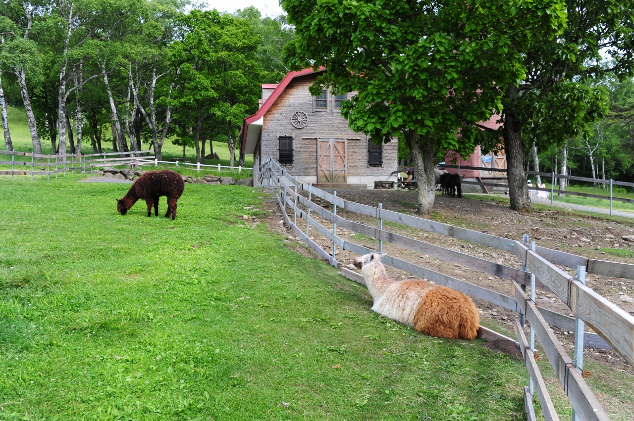 白樺高原国際スキー場のゴンドラ乗り場近くにあります。積雪期にはゲレンデといなる斜面の下部にあります。インカ帝国ゆかりのアルパカがあるのがウリになっています。羊やポニーもいます。ゴンドラ乗り場の駐車場から、緩やかな草原の斜面を登っていくと蓼科ファミリー牧場に着きます。広々してのんびりした雰囲気で、子供連れに好適です。付近には御泉水自然園、蓼科山、蓼科湖、白樺湖など蓼科の観光スポットが点在しています。餌やりを楽しむこともできます。意地悪して動物さんをじらすと唾を吐きかけられるにおでご用心!