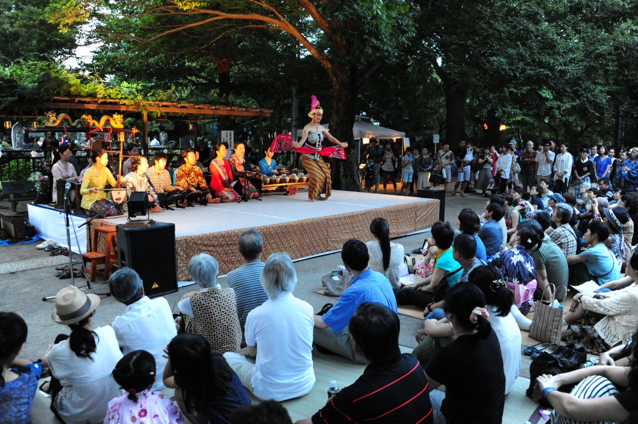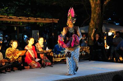 7月の最終日曜日の夕方に献灯会とジャワガムランの奉納があります