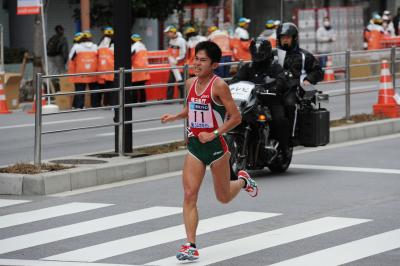 コースは新宿の都庁前→新宿大ガード→歌舞伎町前→防衛庁前→市ヶ谷→飯田橋→九段下→竹橋→皇居前→日比谷公園(10Kかここでゴール)→都営三田線沿い→泉岳寺(折り返し)→日比谷→銀座→日本橋→浅草橋→蔵前→浅草雷門前(折り返し)→銀座→築地→豊洲→東雲→有明→東京ビッグサイト(ゴール)