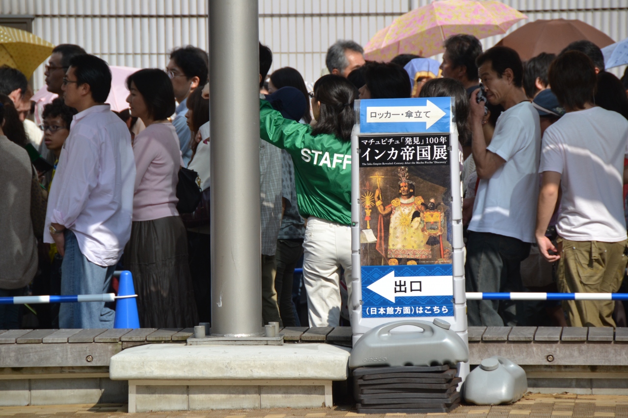 国立科学博物館のインカ展に6/17(日曜日)に行ってきました。ミイラや生贄の際の副葬品、マチュピチュ遺跡などが見所です。会期が2012.06.24までと終了間際だったこともあって、凄い人でした。入場までに戸外で70分行列します。雨上がりの湿気むんむんの中での行列は大変です。建物内に入ると水分補給が出来ませんので、行列に並ぶ前に水を用意して、戸外で行列している最中に水分補給する必要があります。