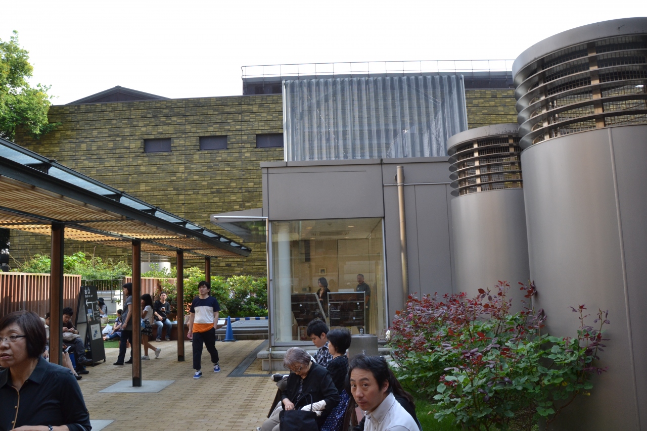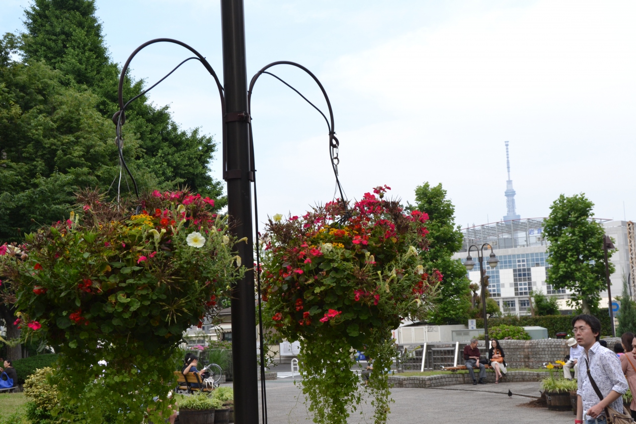 お店の周囲は花壇に囲まれ、華やいだ雰囲気です。お店の前庭からはスカイツリーも見えます。お店自体は、セルフサービス形式でパイプ椅子のカジュアルな感じですが、お客の回転が早いようで他のお店に比べて着席しやすいようです。