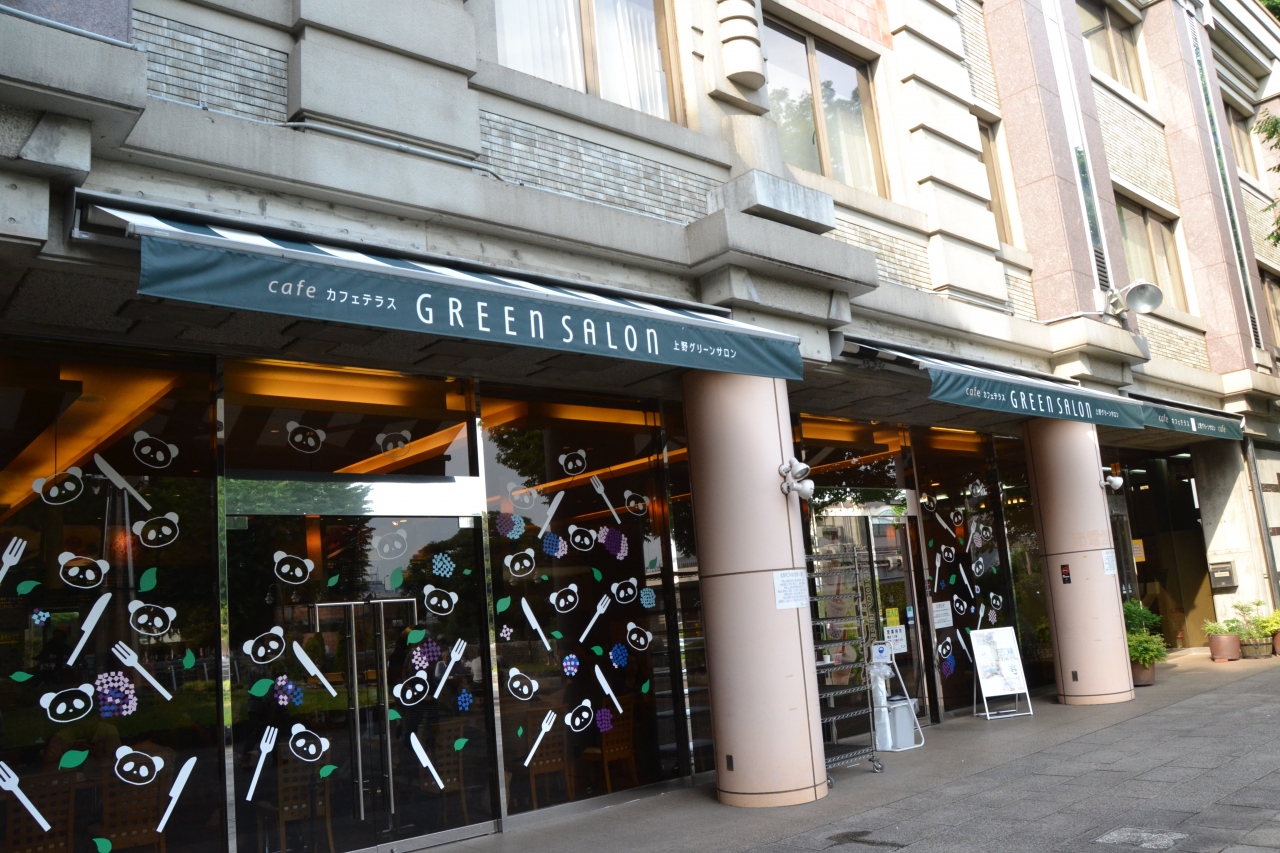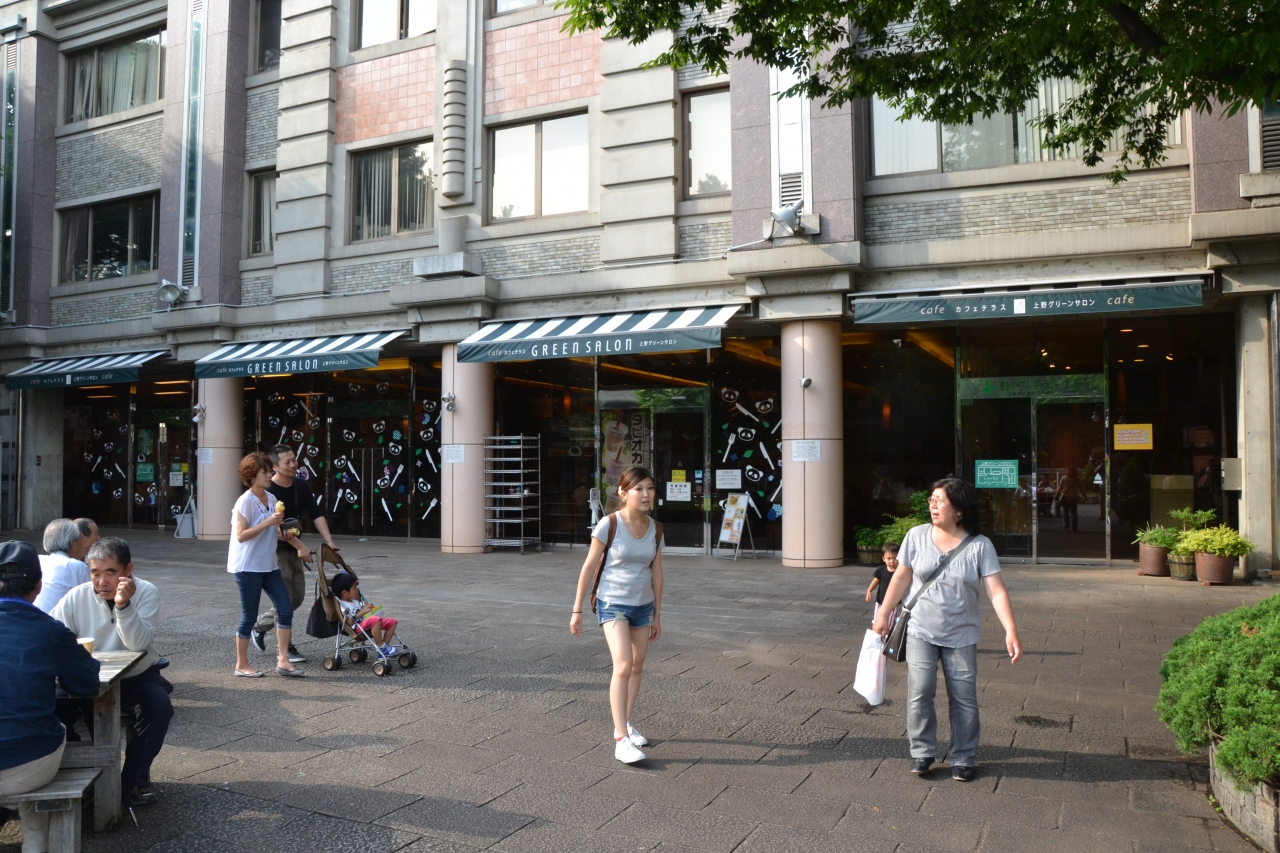 上野の森には、沢山の休憩施設がありますが、ここもその一つ。カフェテラス・グリーンサロンとも呼ばれています。東京文化会館とJR上野駅の公園口改札口に近く、上野公園の案内所の裏手にあります。