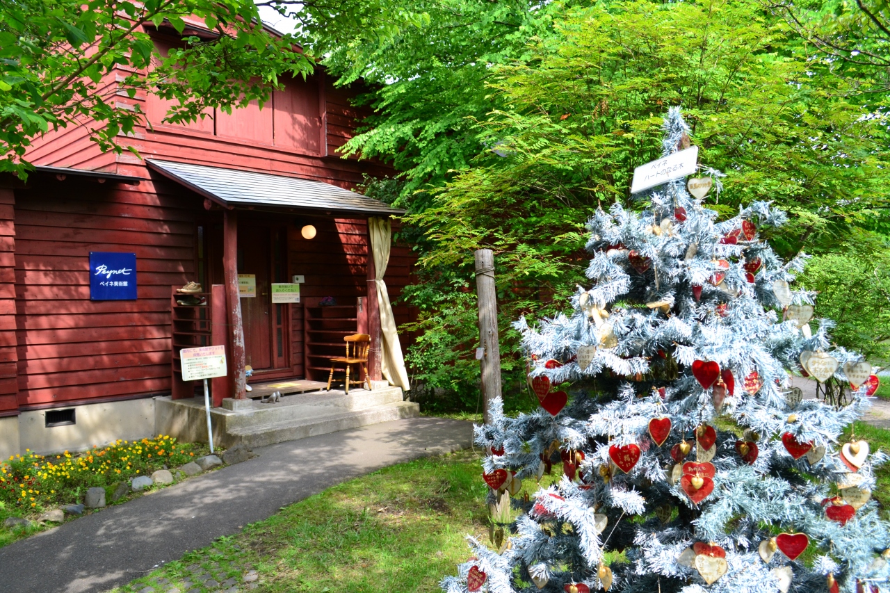 明治・大正の小説家 有島武郎の別荘浄月荘の建物を移築してカフェにしています。2階が文学資料館になっています。軽井沢タリアセンの施設の一つですが、カフェだけでしたら入園料や入館料は要りません。2階の資料館へは軽井沢高原文庫の入館券か、軽井沢タリアセンのペイネ美術館、深沢紅子野の花美術館とのセット券が必要です。