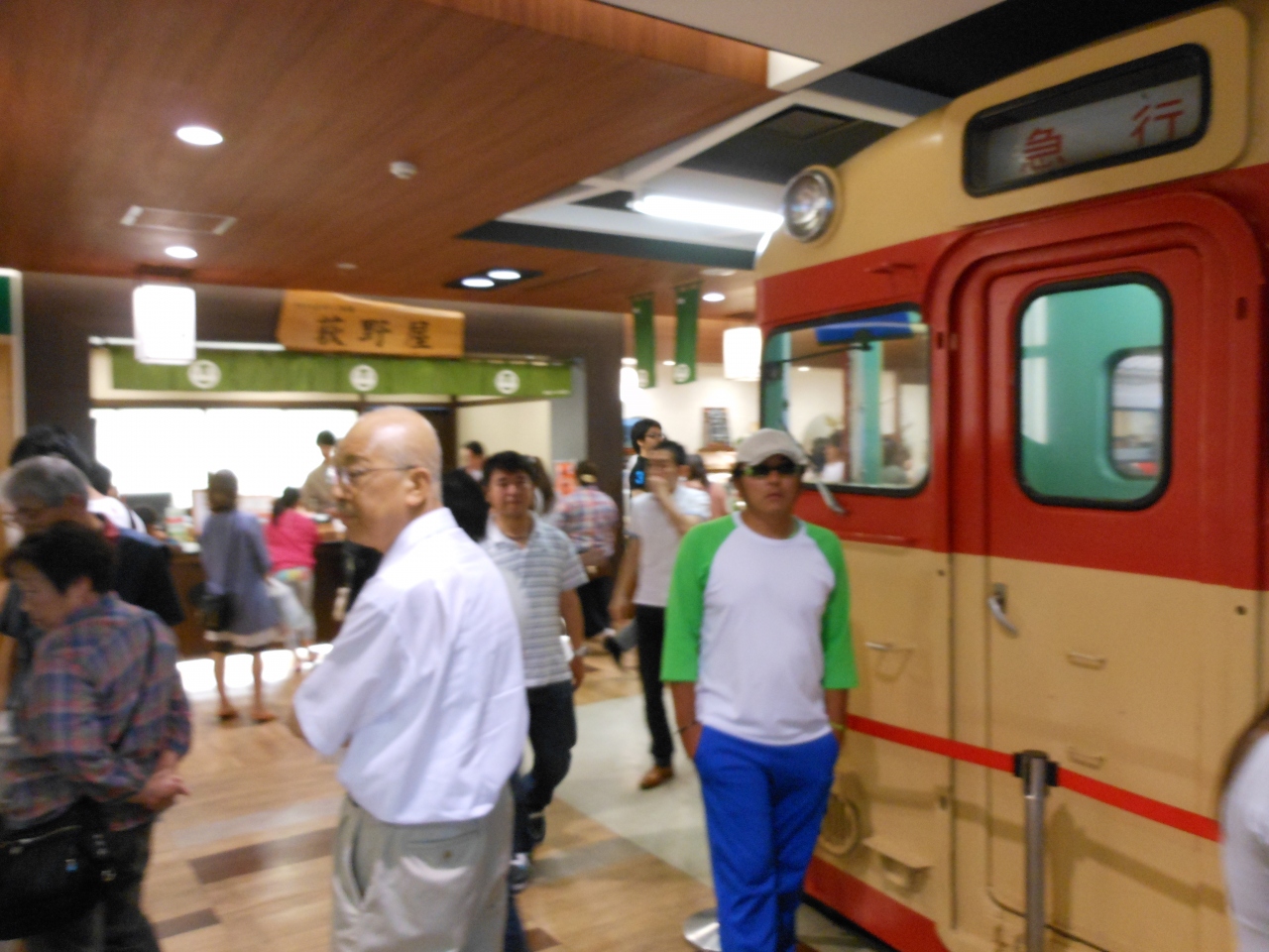 どちらかというと上り線の方がにぎやかで、おぎのやの釜めし売り場の前にはJRの気動車キハ58型の車両が鎮座していて、その座席で駅弁気分を味わうことが出来ます。