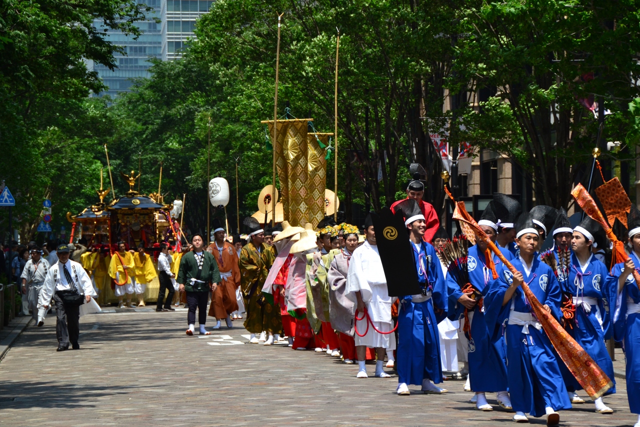 日枝神社のお祭り。都内を王朝装束で練り歩く神幸祭は最大の見せ場です。