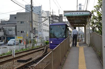 専用軌道と道路を走る部分の境界駅。道路上を走る都電を見るには好適です。